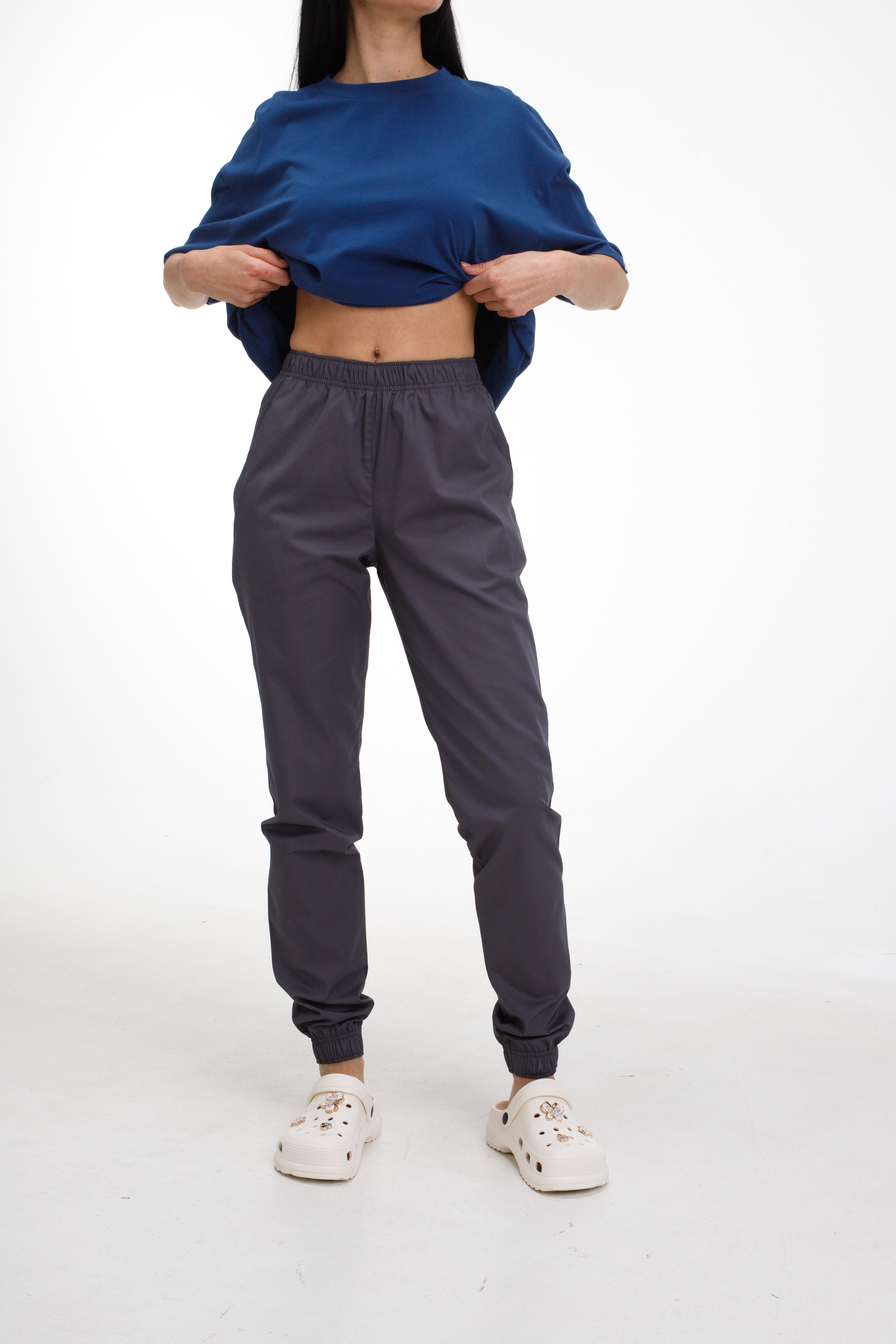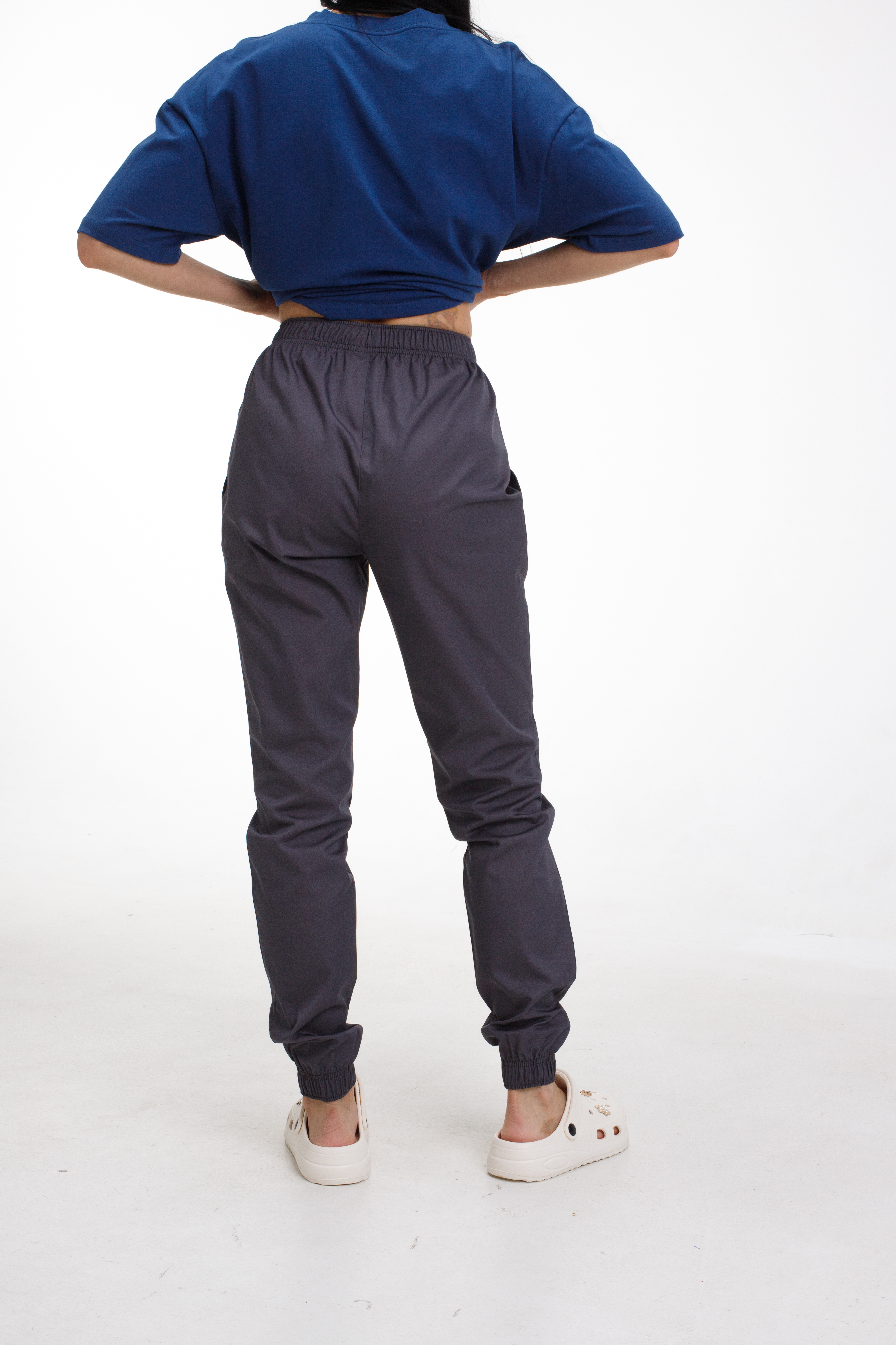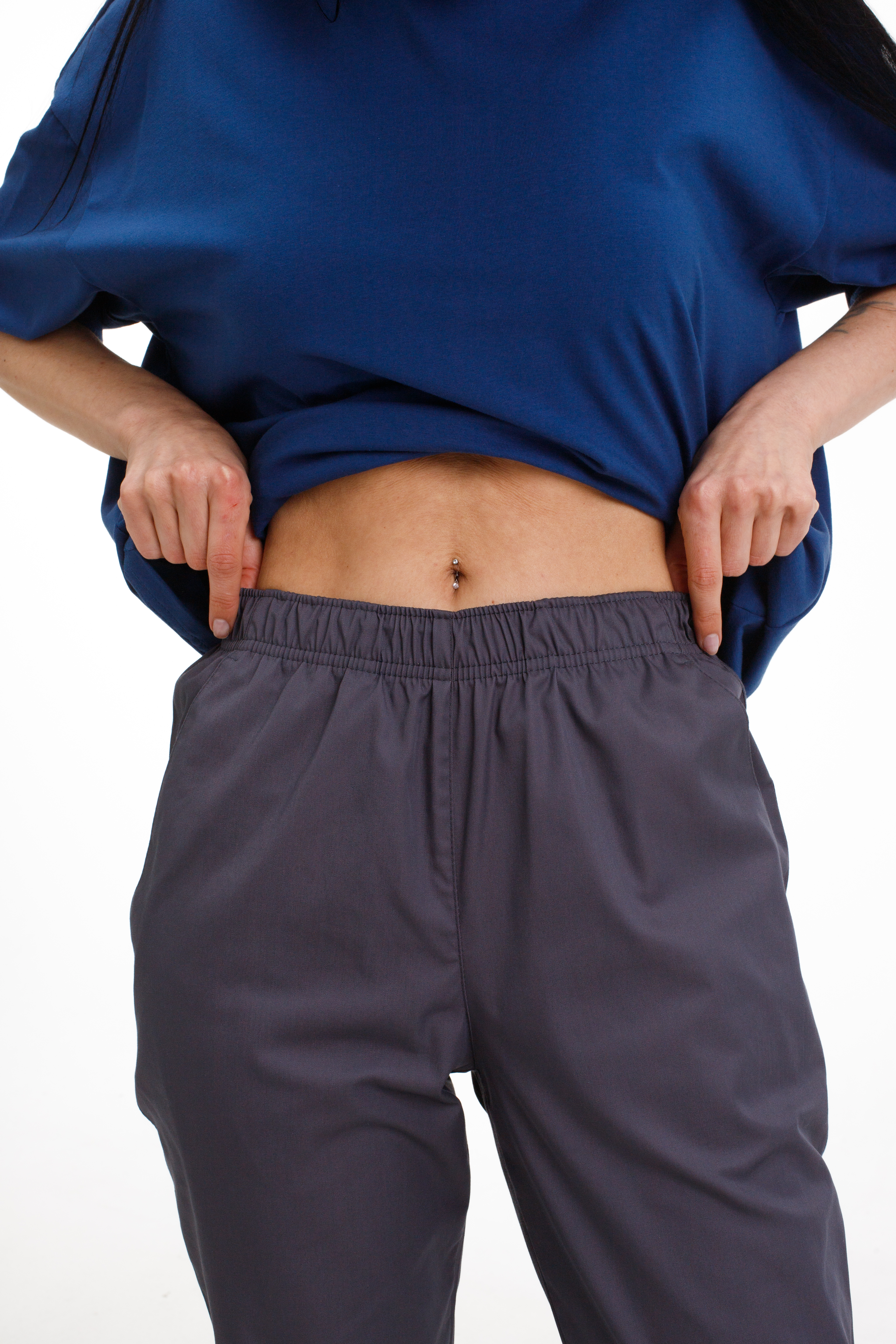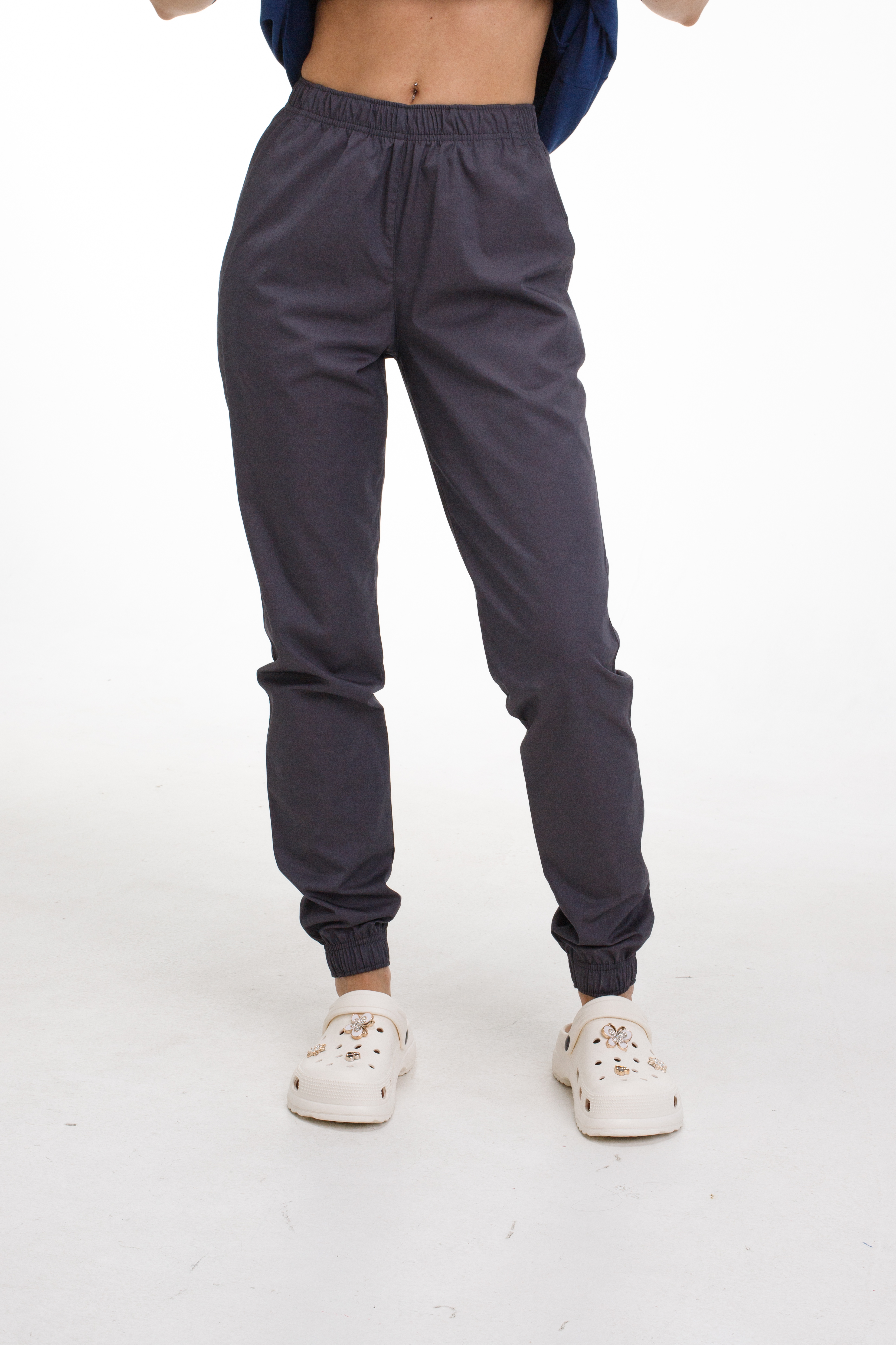 Spodnie medyczne typu joggery uszyte są z tkaniny bawełnianej Cotton Elite o mieszanym składzie. Materiał ma właściwości higroskopijne, doskonale utrzymuje kształt, nie traci koloru po wielu praniach i nie mechaci się.
