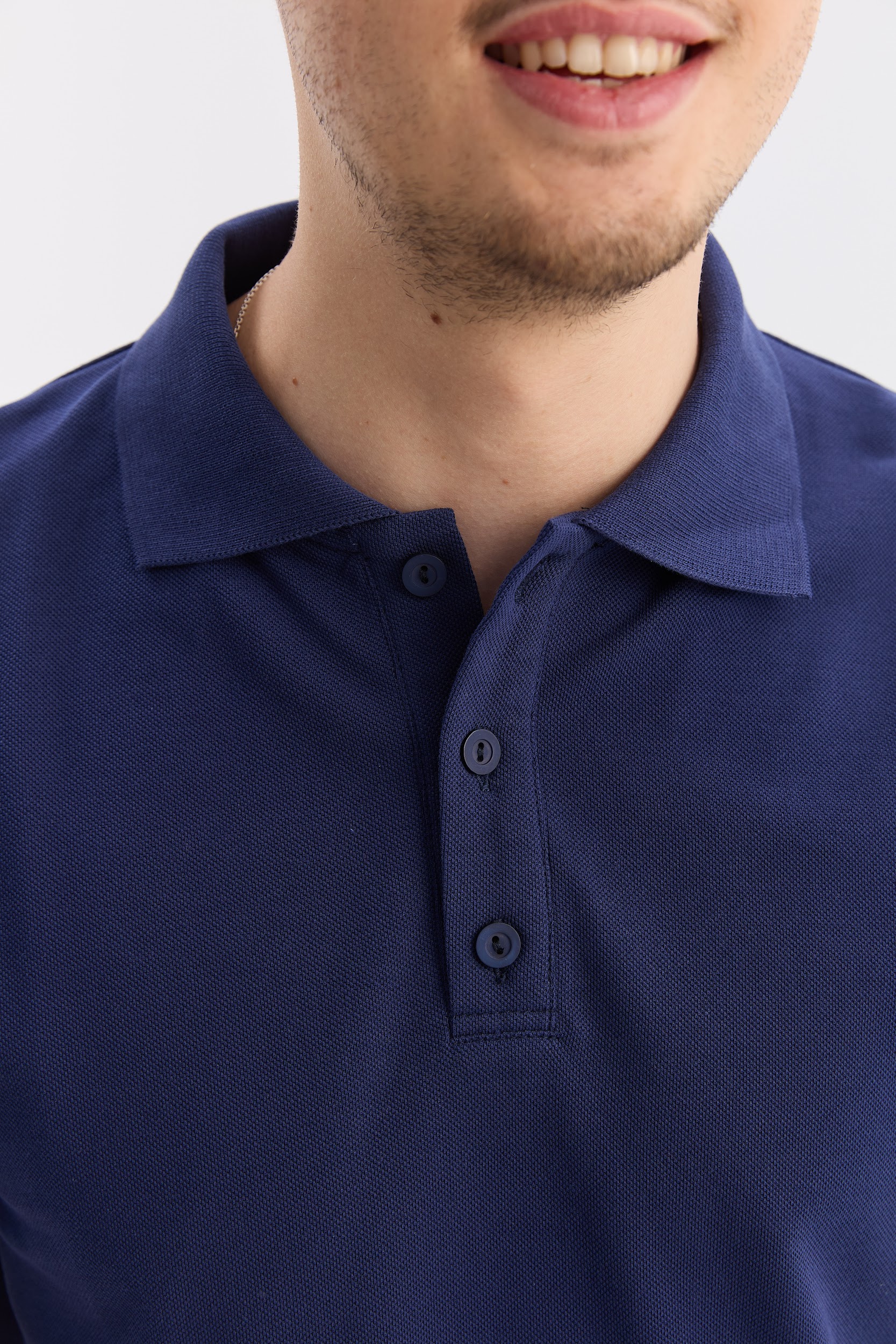 Odświeżone polo z gęstej tkaniny, która oddycha, nie odkształca się po praniu, jest odporna na zagniecenia i zachowuje kształt oraz wygląd. Polo posiada klasyczny kołnierzyk, zapięcie na guziki i krótkie rękawy.