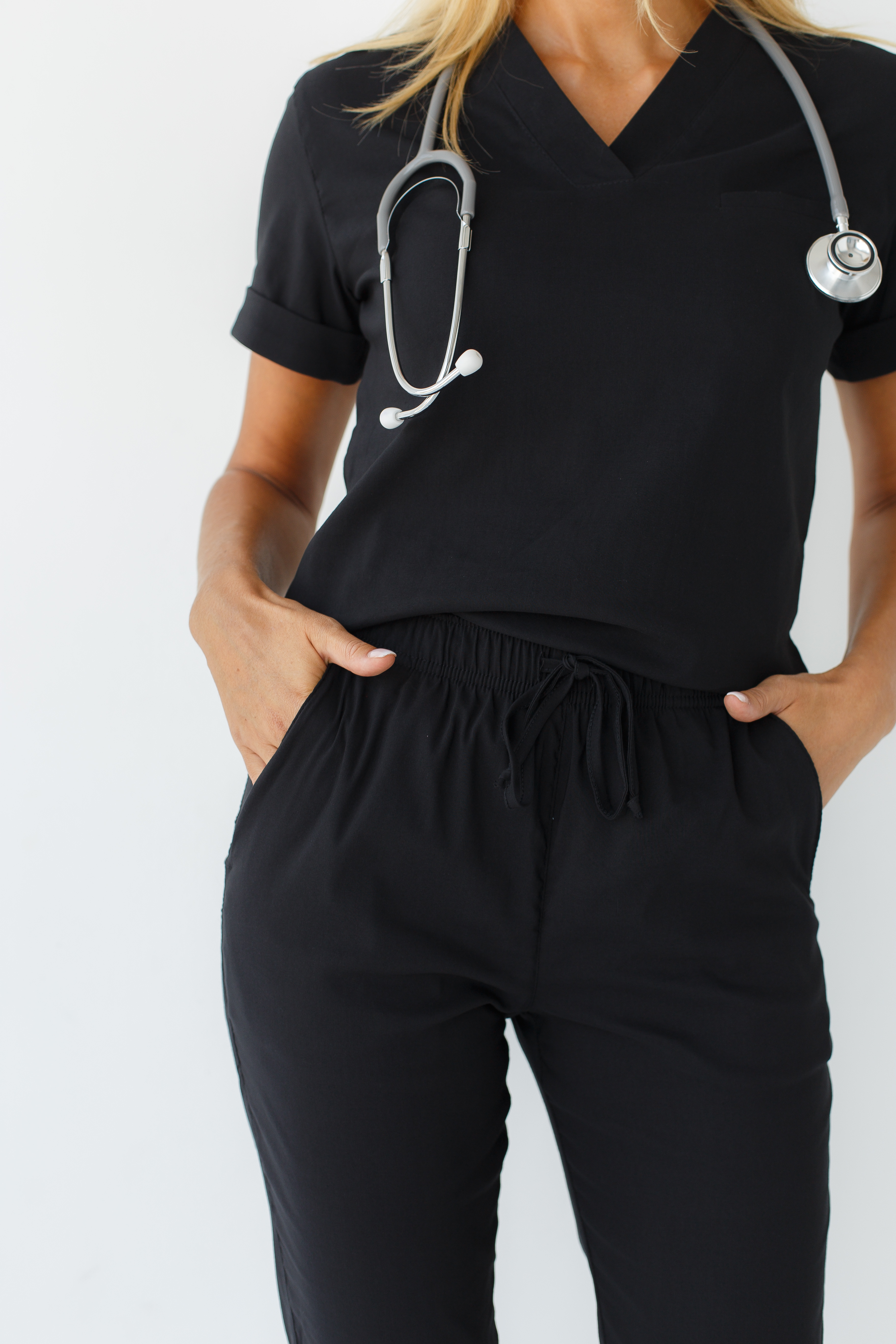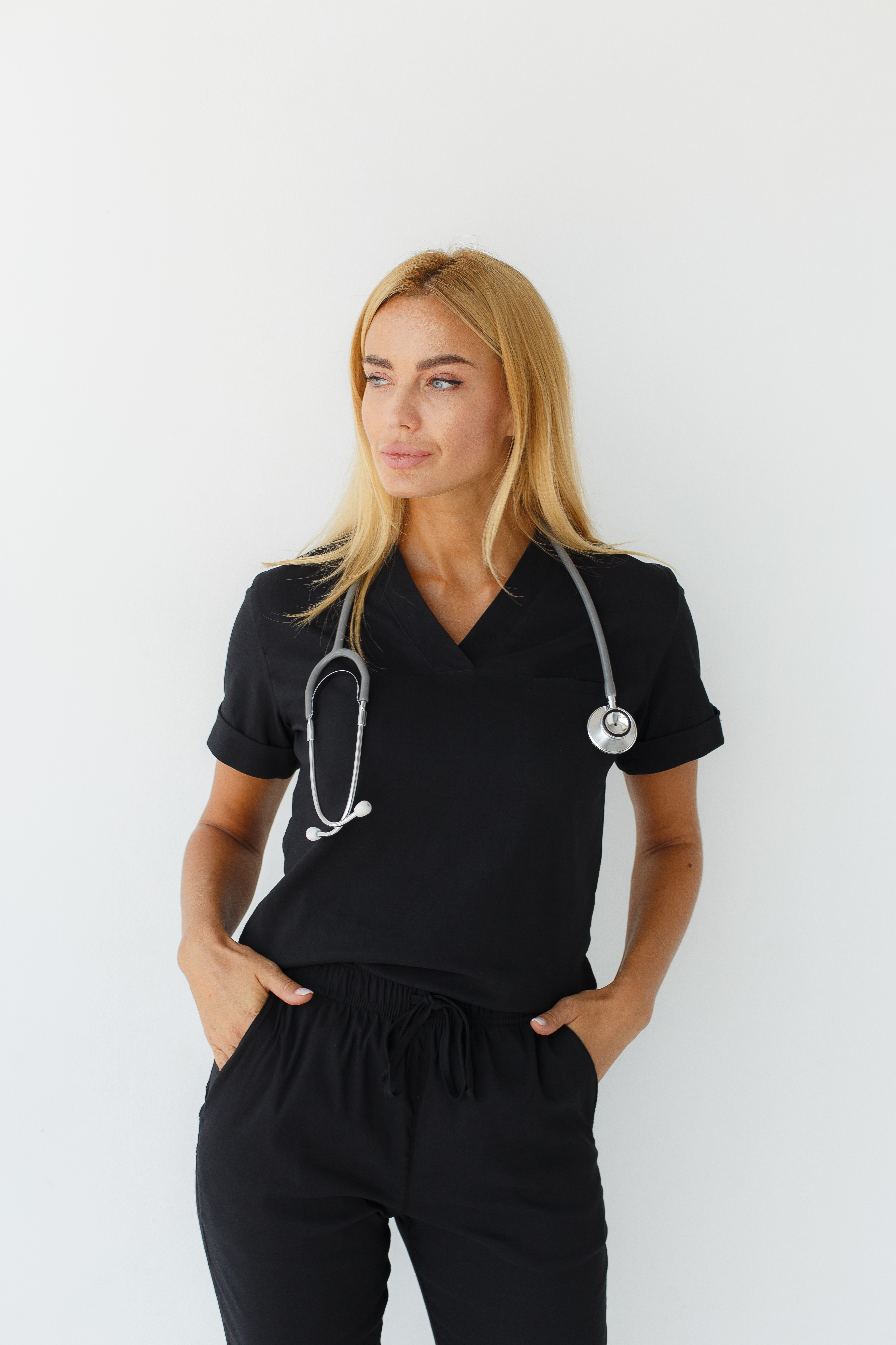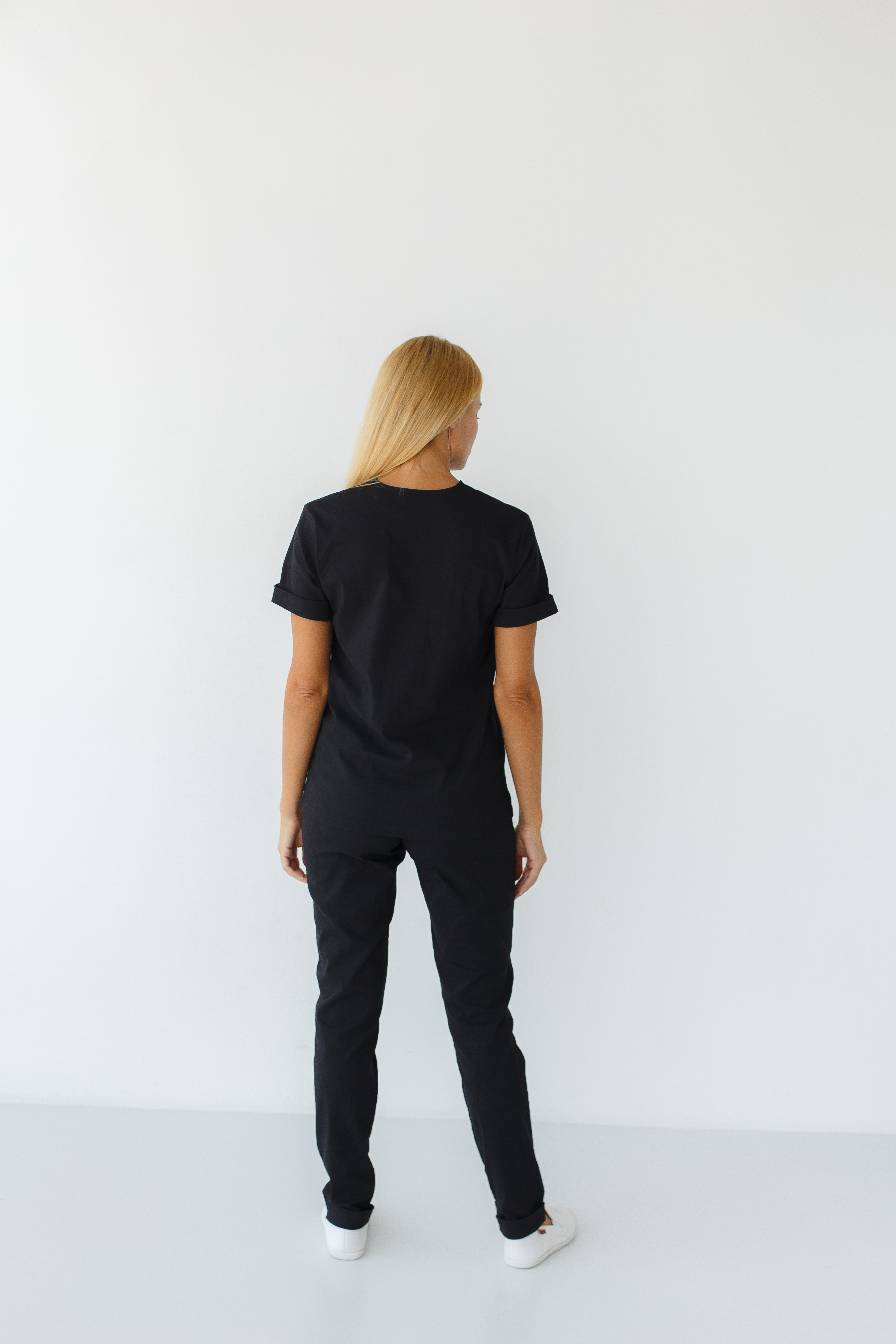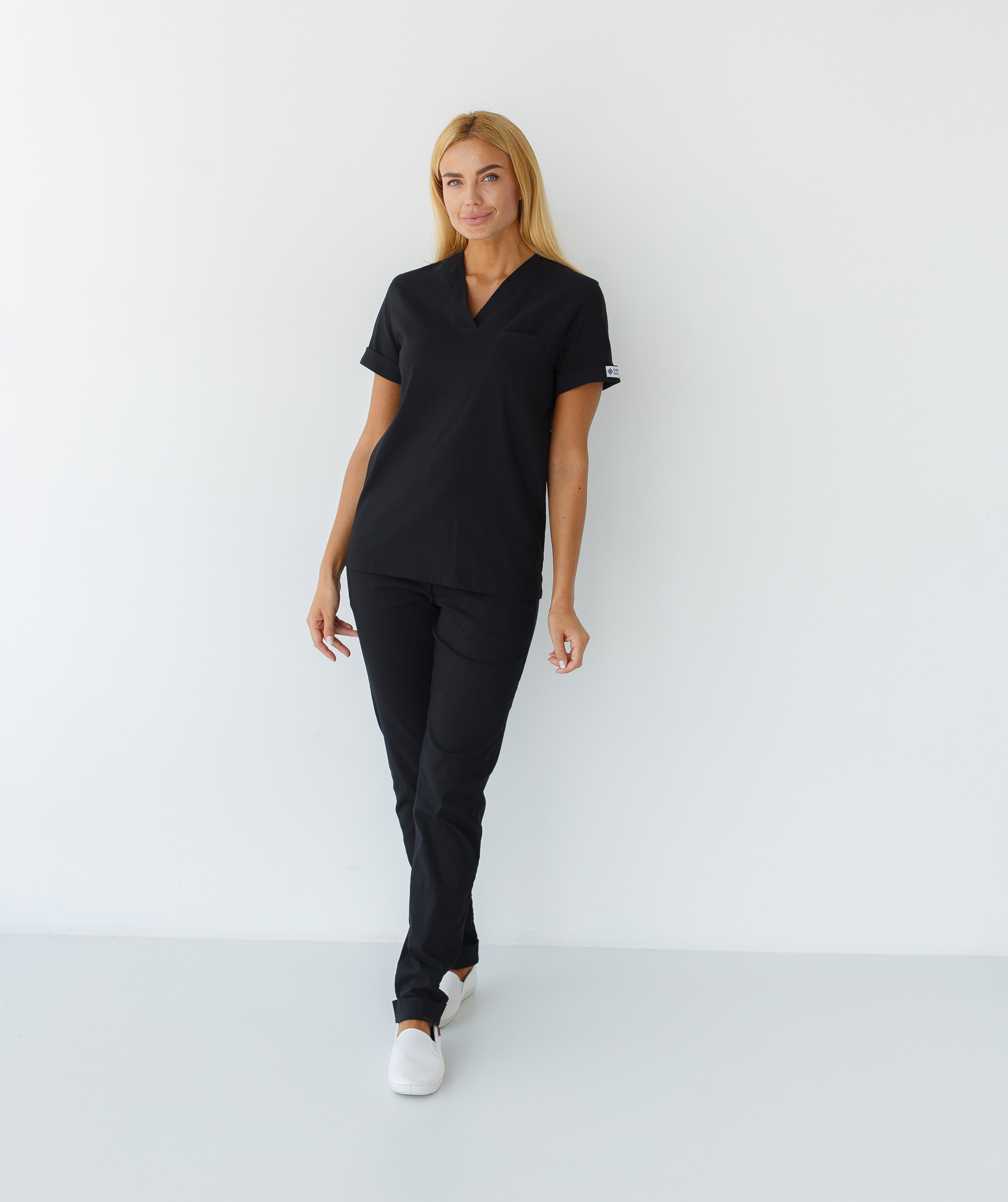 Strój składa się z chirurgicznej koszuli o prostym kroju oraz spodni. Koszula z krótkimi rękawami i dekoracyjnymi mankietami, wyposażona w kieszeń-wszywkę. Spodnie, zwężane ku dołowi, z wszytymi kieszeniami, o średnim stanie, z troczkiem w pasie na gumce do regulacji talii.Tkanina Premium Cotton o wysokiej zawartości bawełny i włókien lycry. Lekki i wygodny model zapewnia maksymalny komfort podczas pracy i pozwala skórze oddychać.